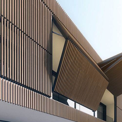 Facade Screens are used in both residential and commercial building projects. Screens are both practical and decorative, the types of screens vary from aluminium, timber to composite materials combining timber and plastic. They can be made in many different styles, custom screens, batten cladding, fixed panels, laser cut decorative panels and motorised horizontal and vertical battens. the options are endless.